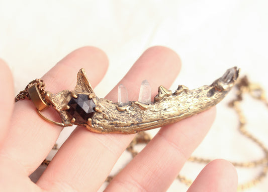 Faceted Garnet Jawbone with Quartz teeth necklace
