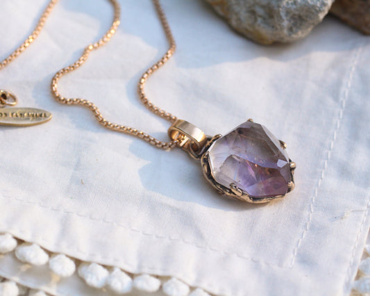 Large hand-faceted Smoky-Amethyst necklace