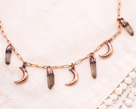 Smoky Quartz and crescent moon charm necklace