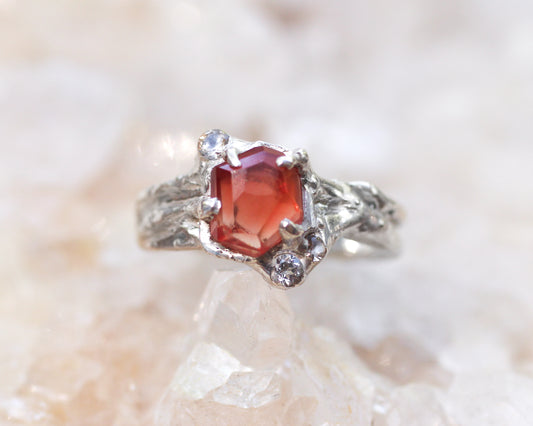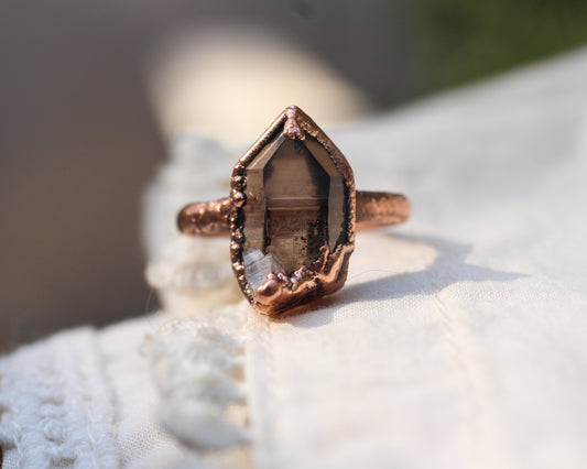 Hand Faceted Smoky Quartz ring - Size 7.25