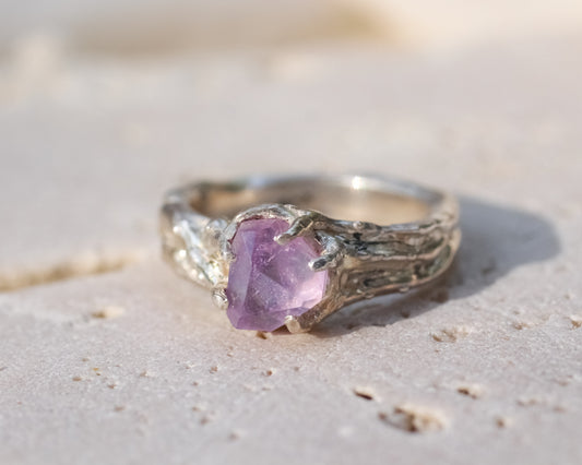 Hand faceted Amethyst ring in Silver - Size 6.75