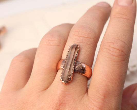 Quartz, Smoky Quartz, Amethyst and Topaz statement ring - size 8