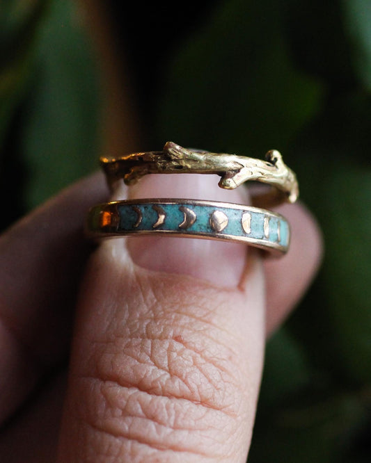 Inlaid Moon Phase ring - Made to Order - Silver or Bronze