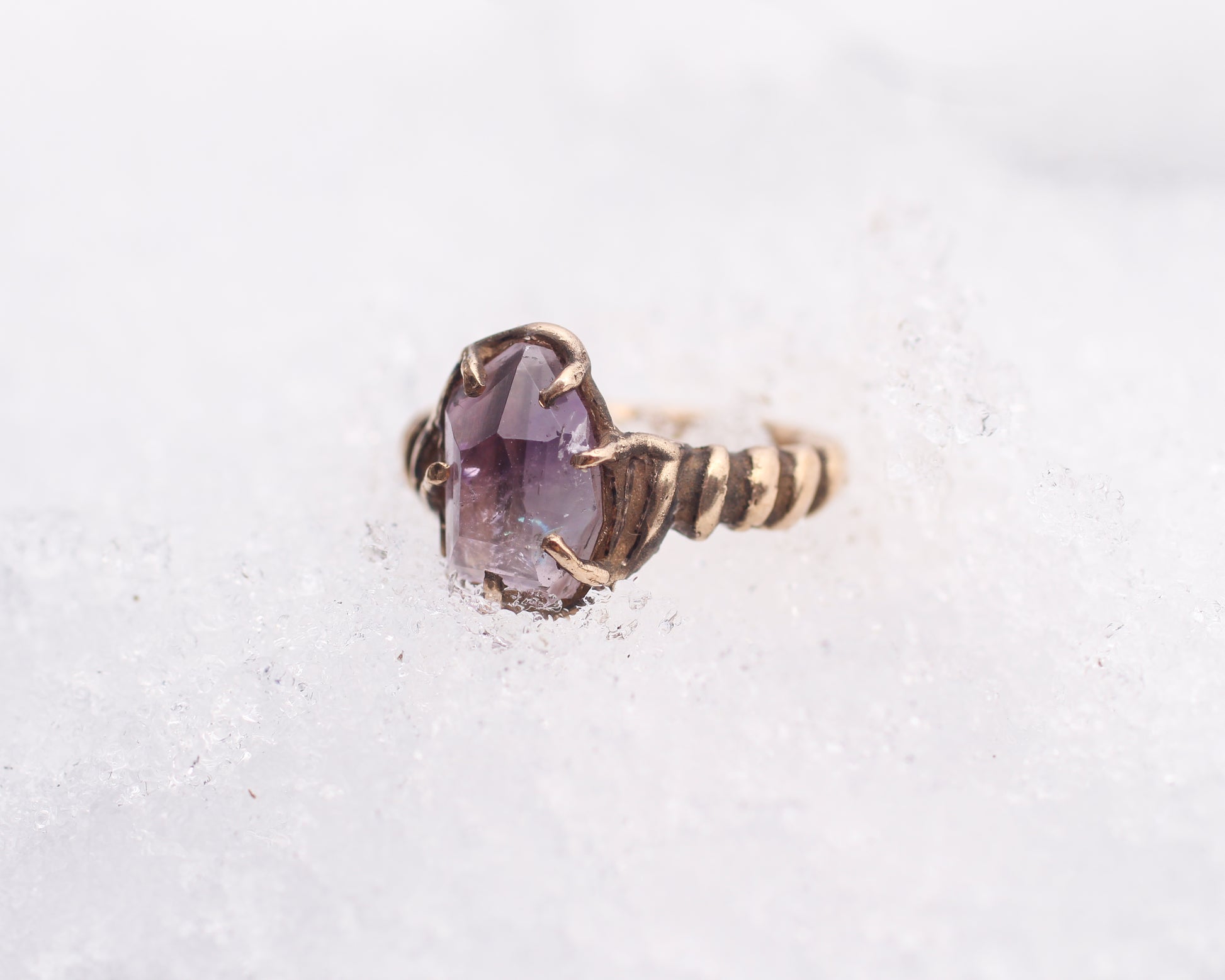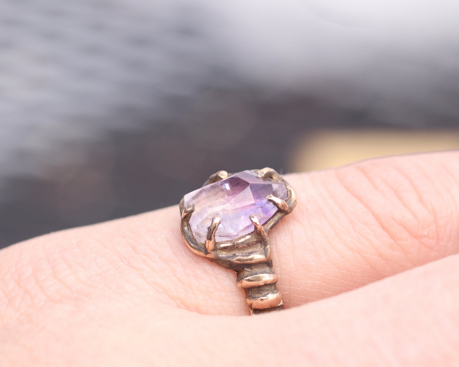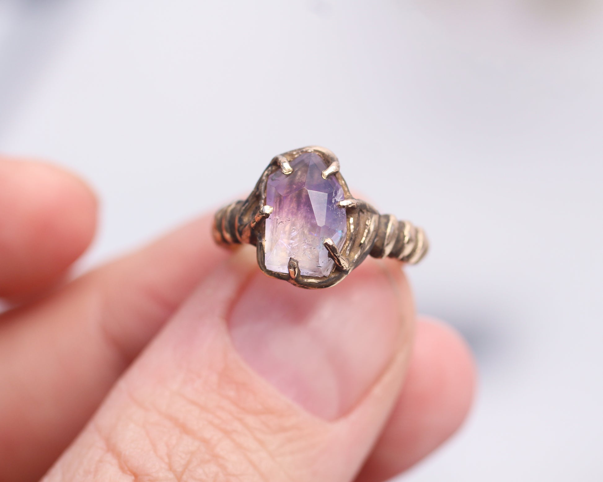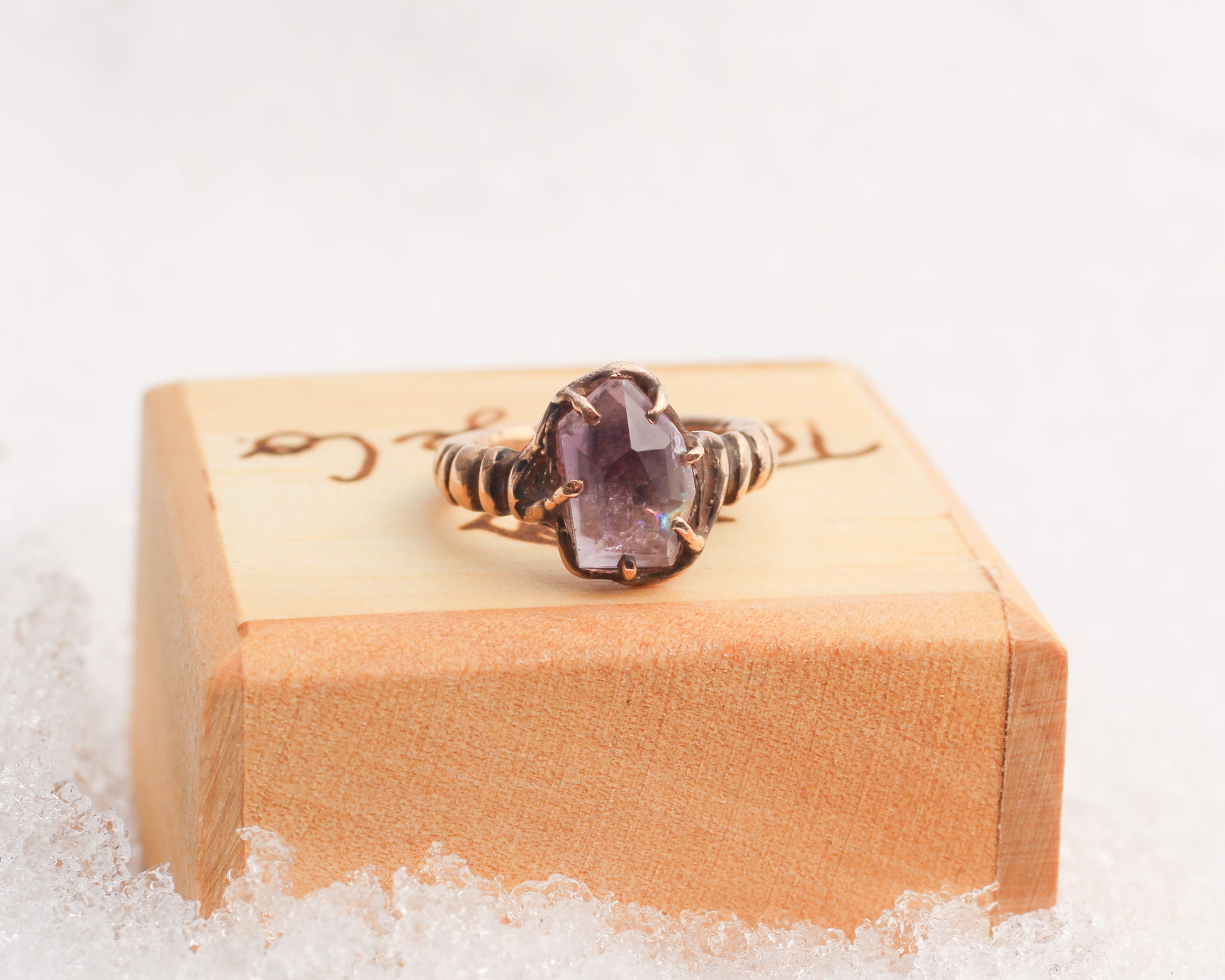 Locally mined and hand faceted Smoky-Amethyst from the Eastern Sierras, CA (if you look close in the bottom right corner of the stone in the photos you can see a colorful rainbow flash when light catches )