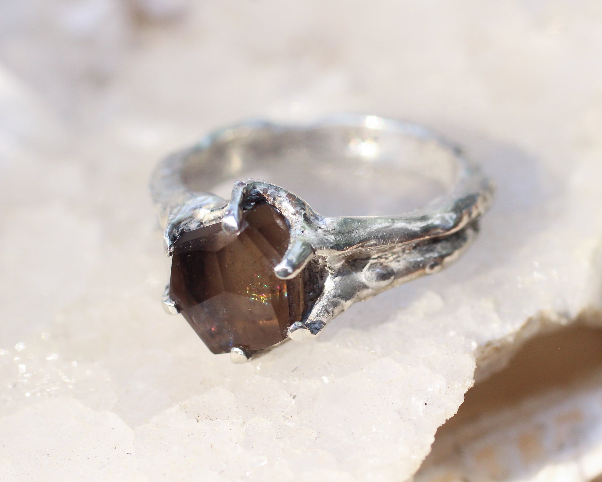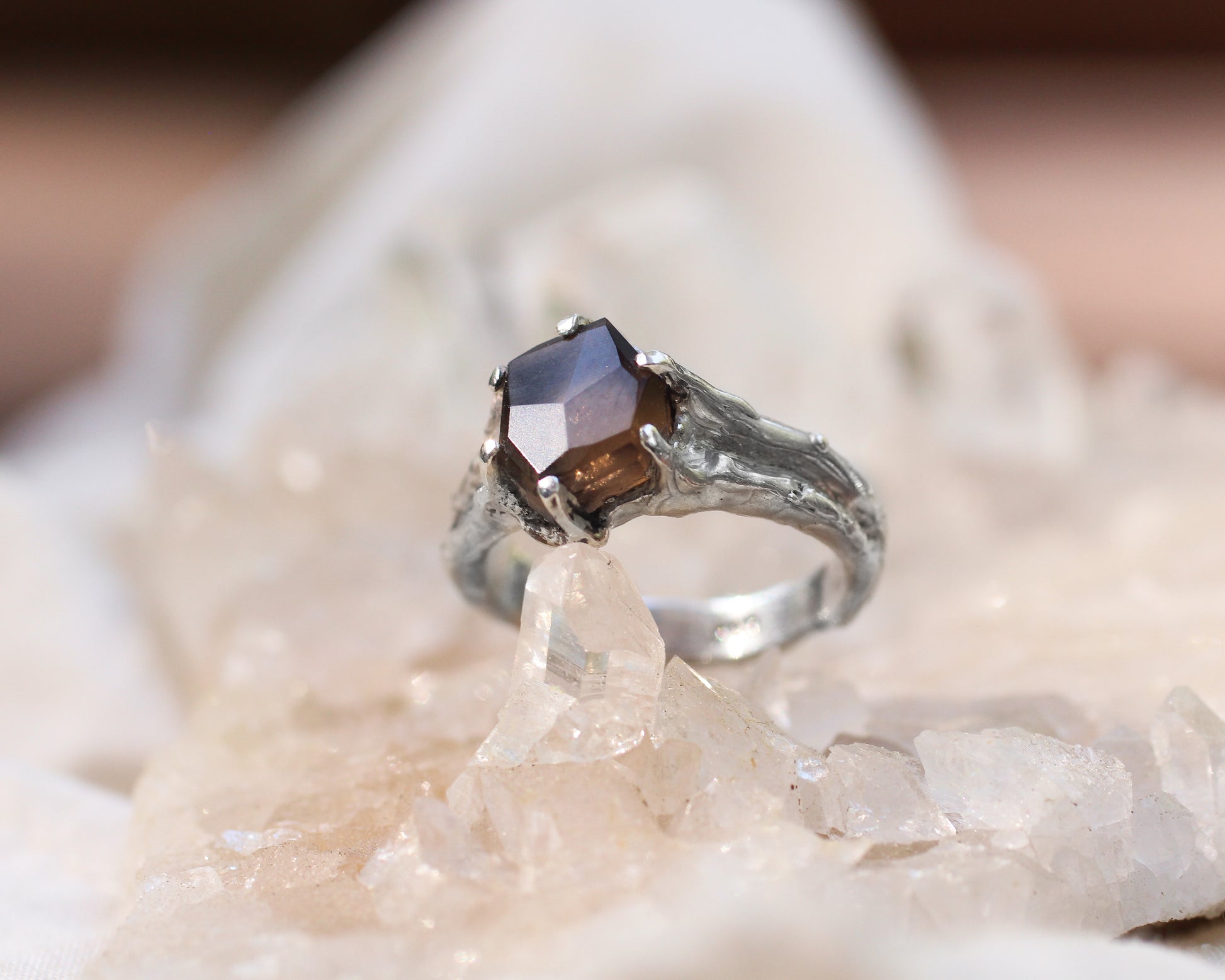 Hand Faceted Smoky Quartz ring - Size 7.25
