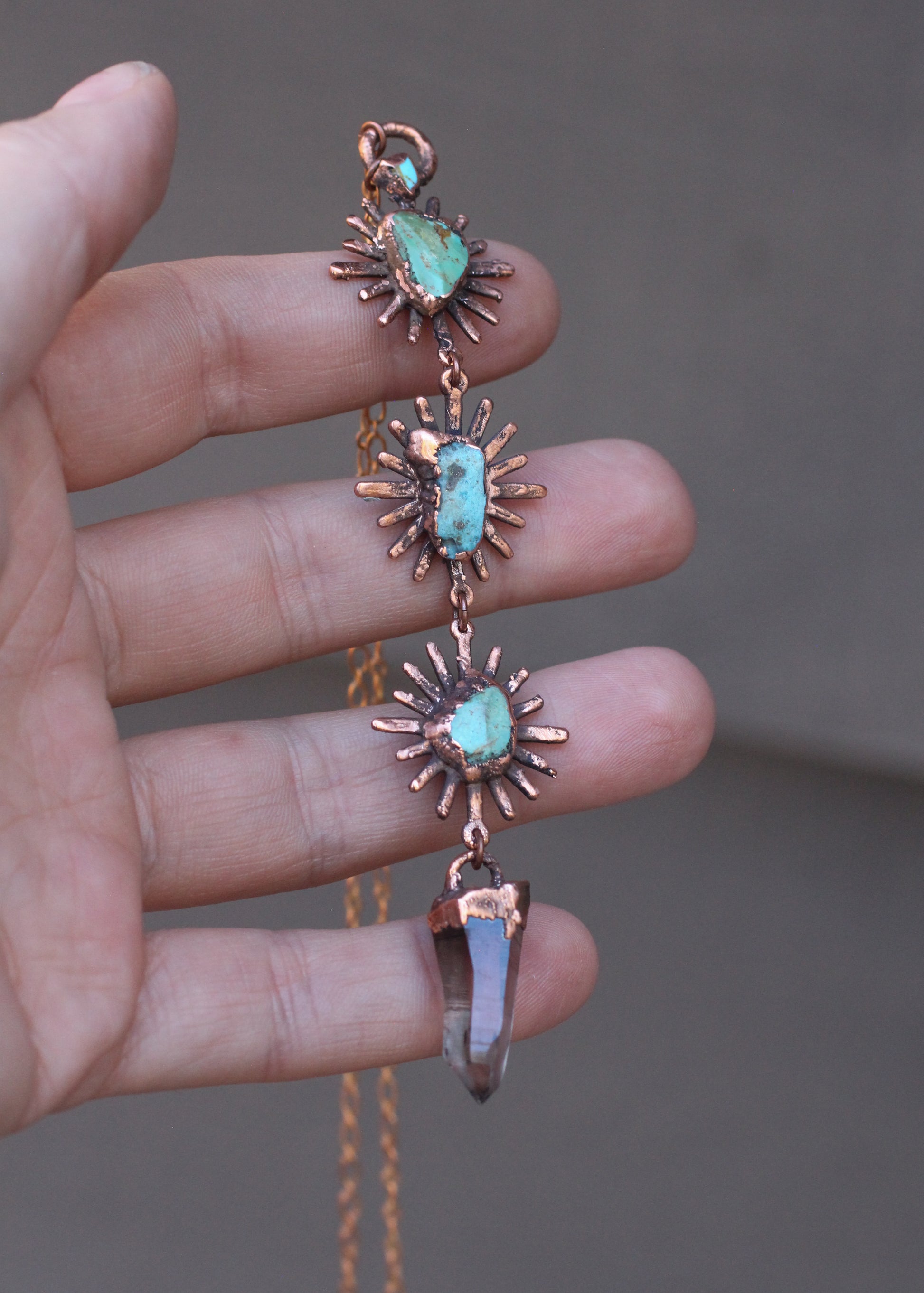 Ombré Smoky Quartz and Turquoise sun tiered necklace