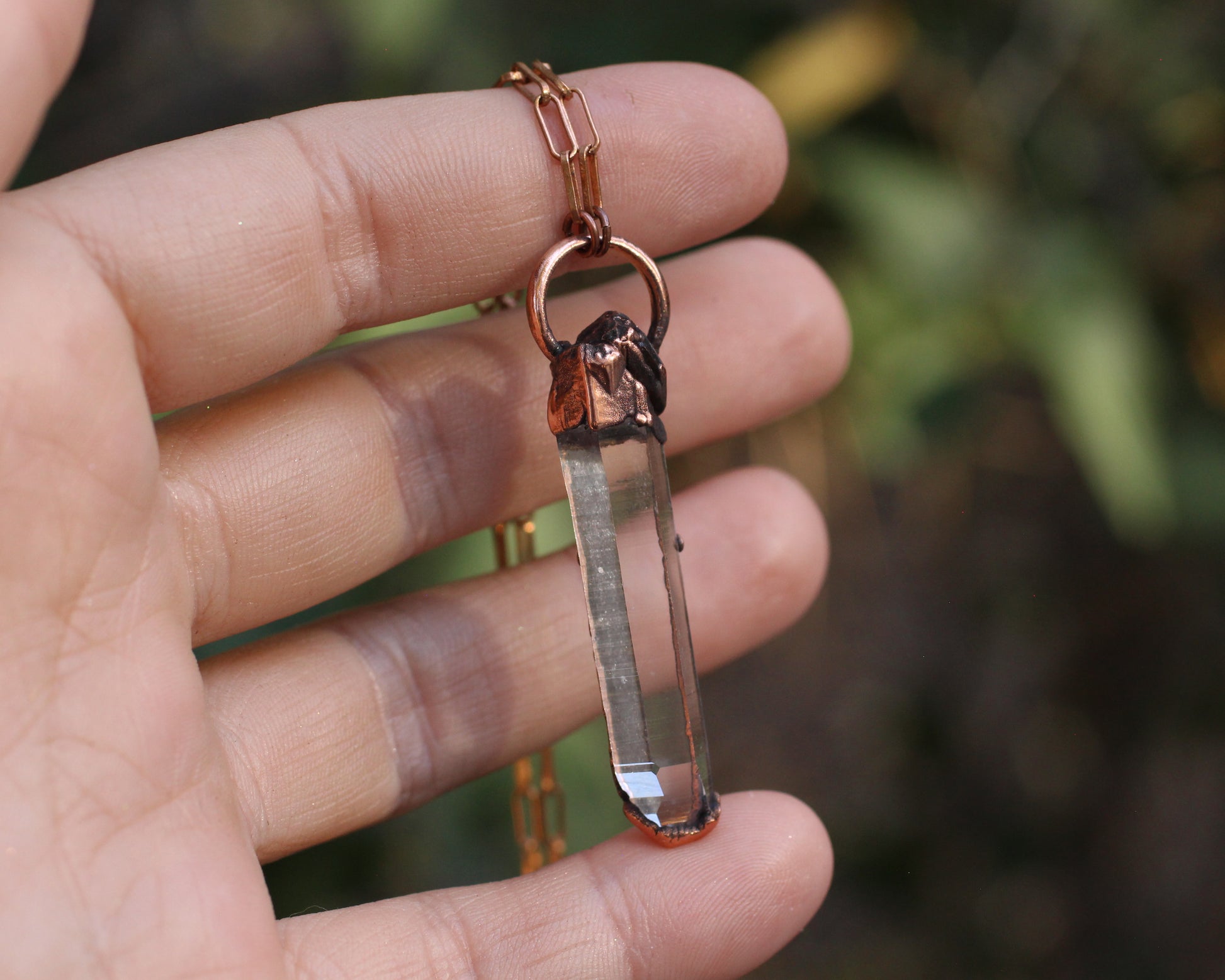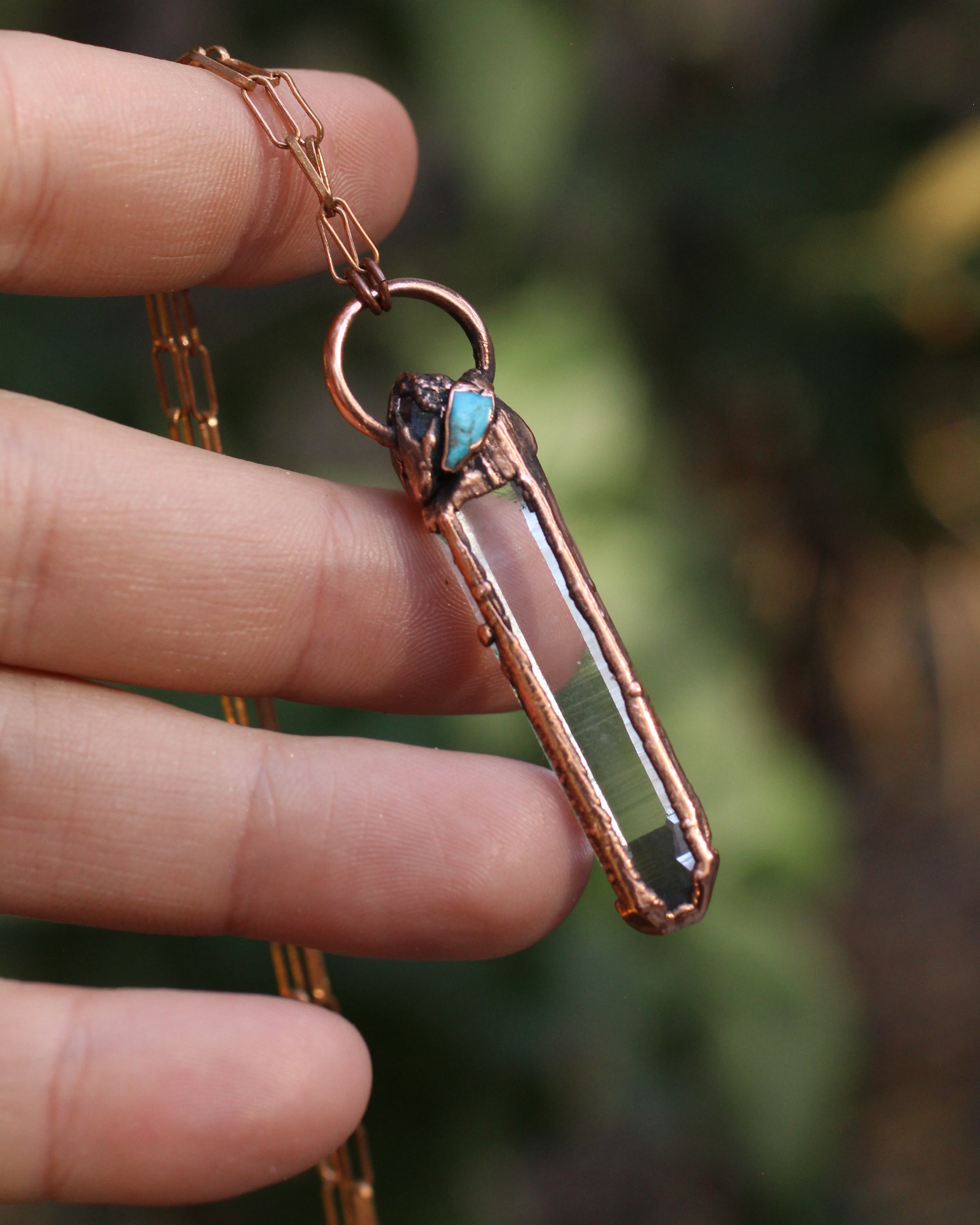 Arkansas Quartz paired with a hidden inlaid Arizona Turquoise - copper 30” chain