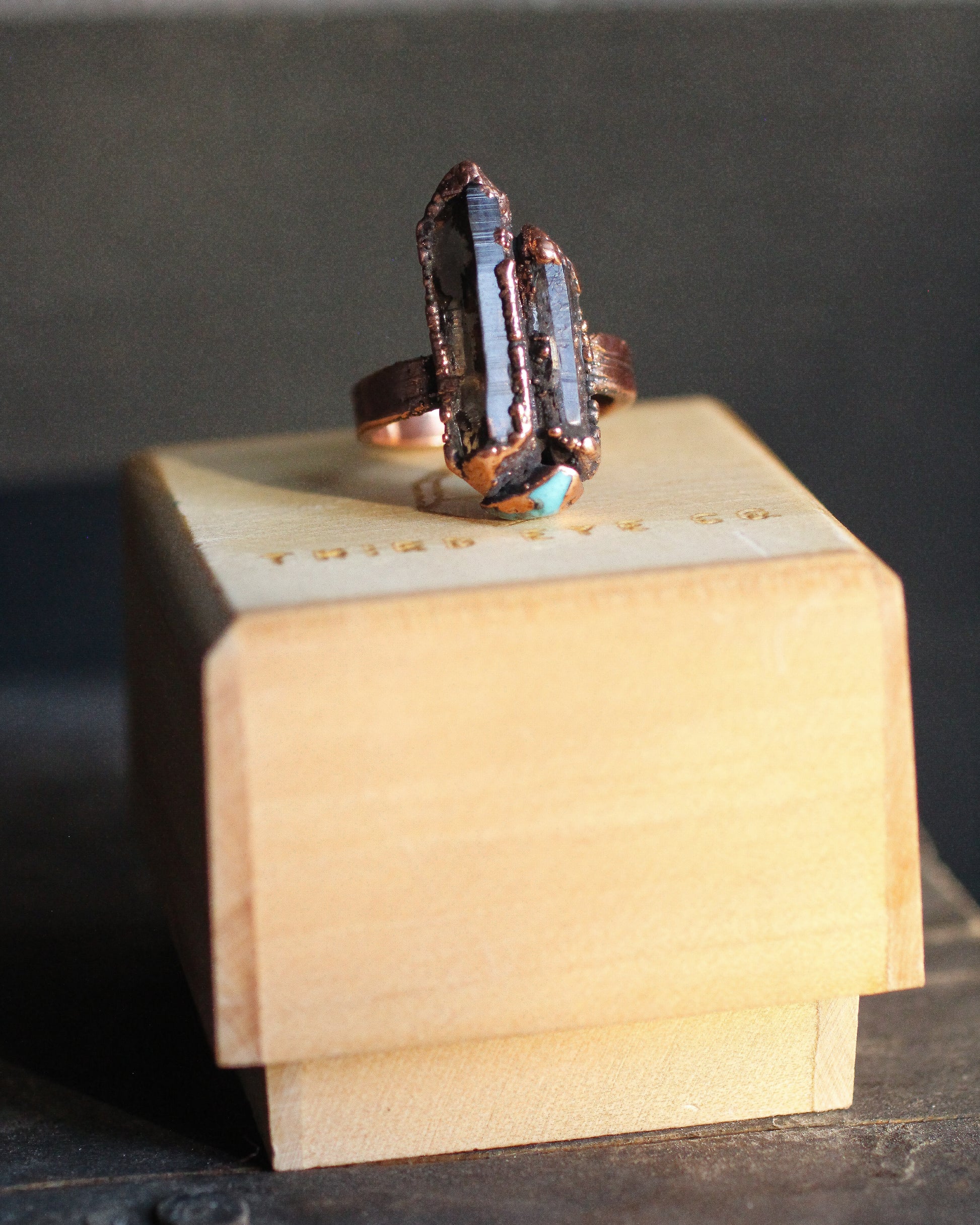 Quartz, Smoky Quartz and Turquoise ring - size 6.75