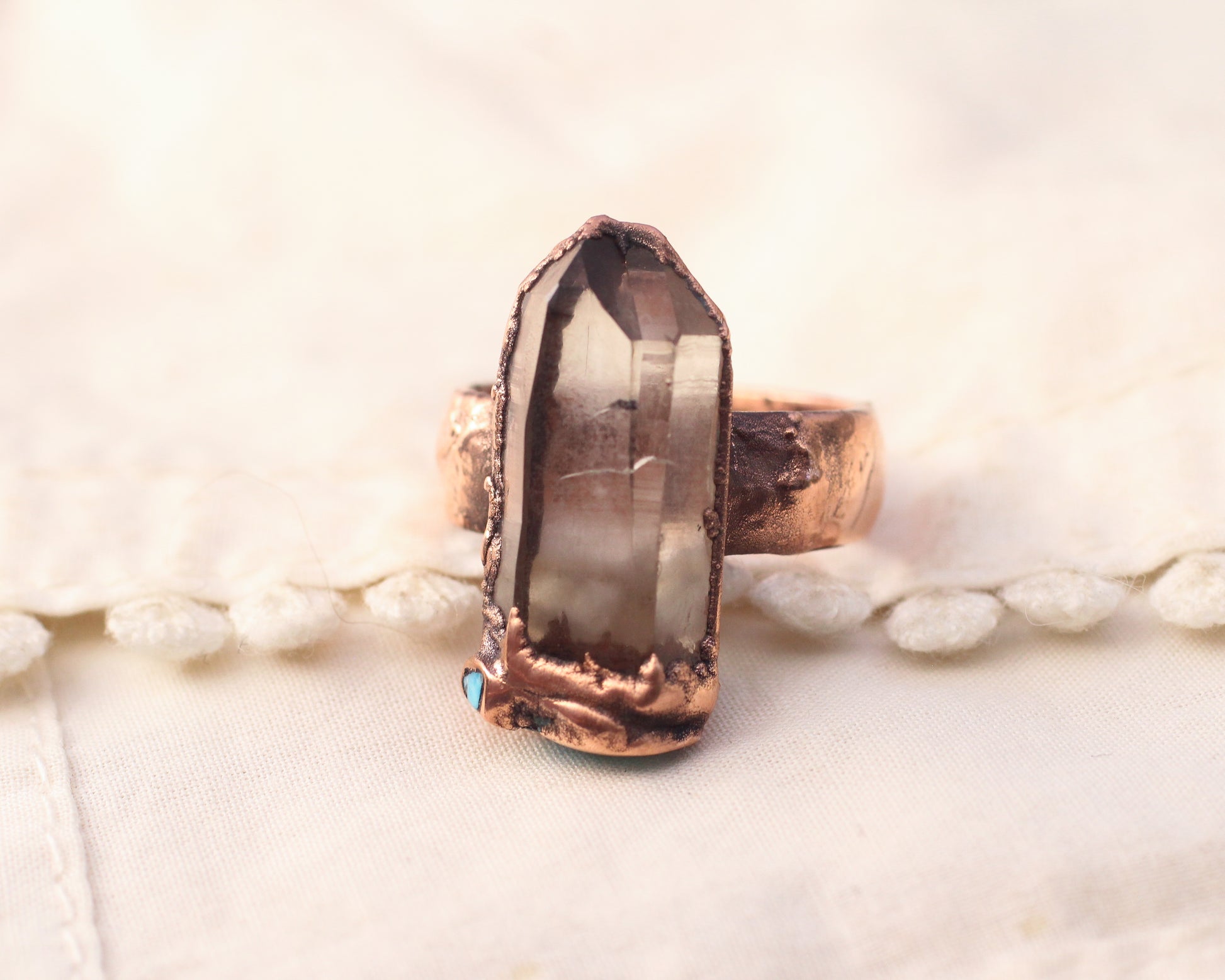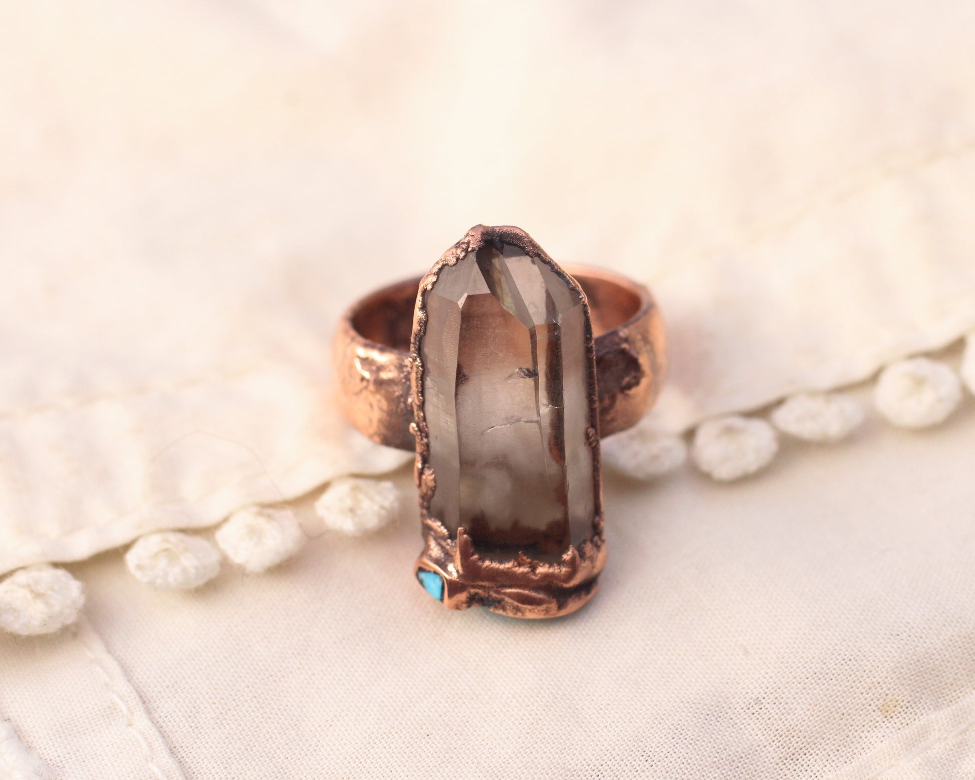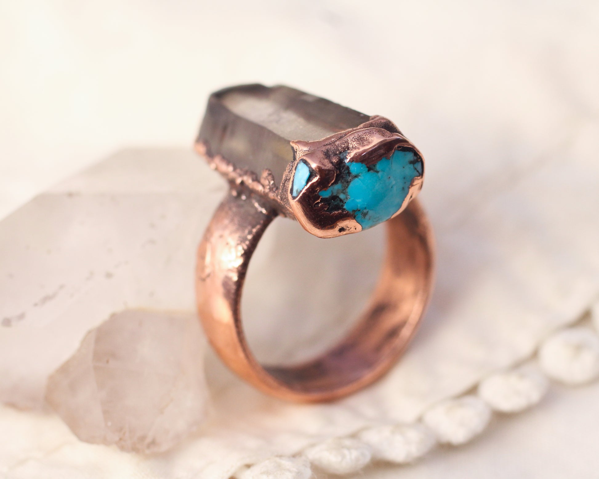 Locally mined Smoky Quartz from the Eastern Sierras, CA paired with inlaid Arizona Turquoise - Copper