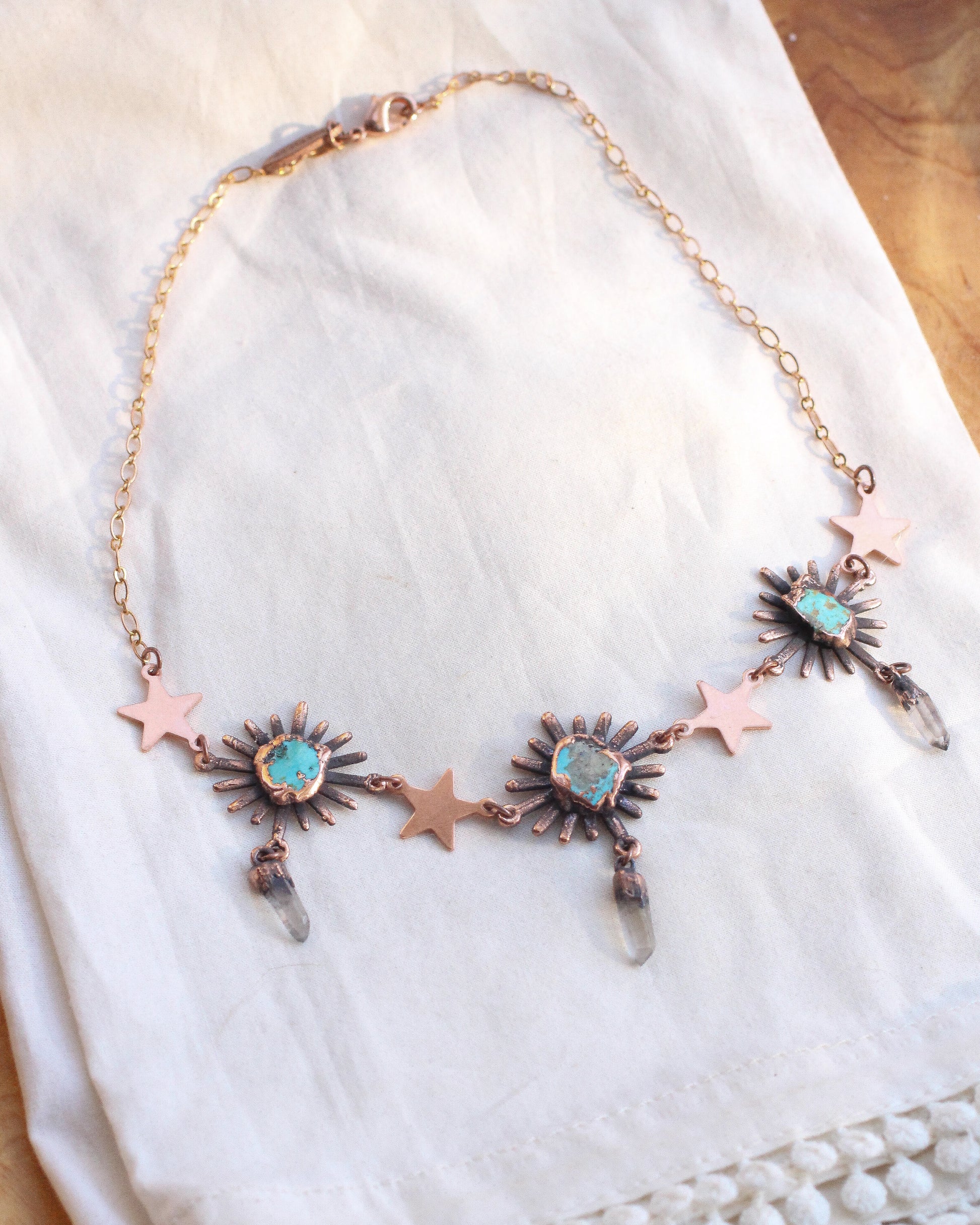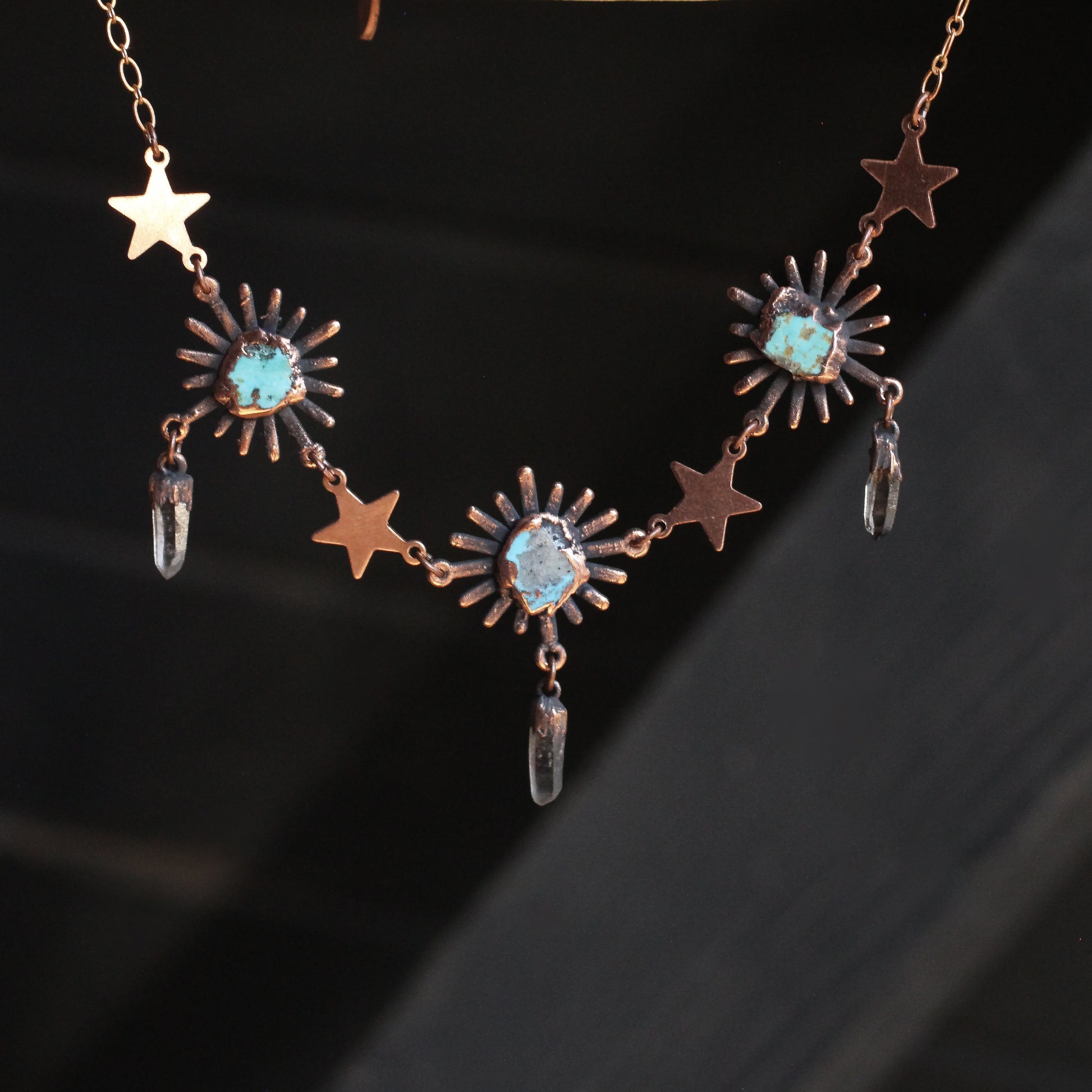 Locally mined Smoky Quartz from the Eastern Sierras, CA paired with inlaid Arizona Turquoise.
