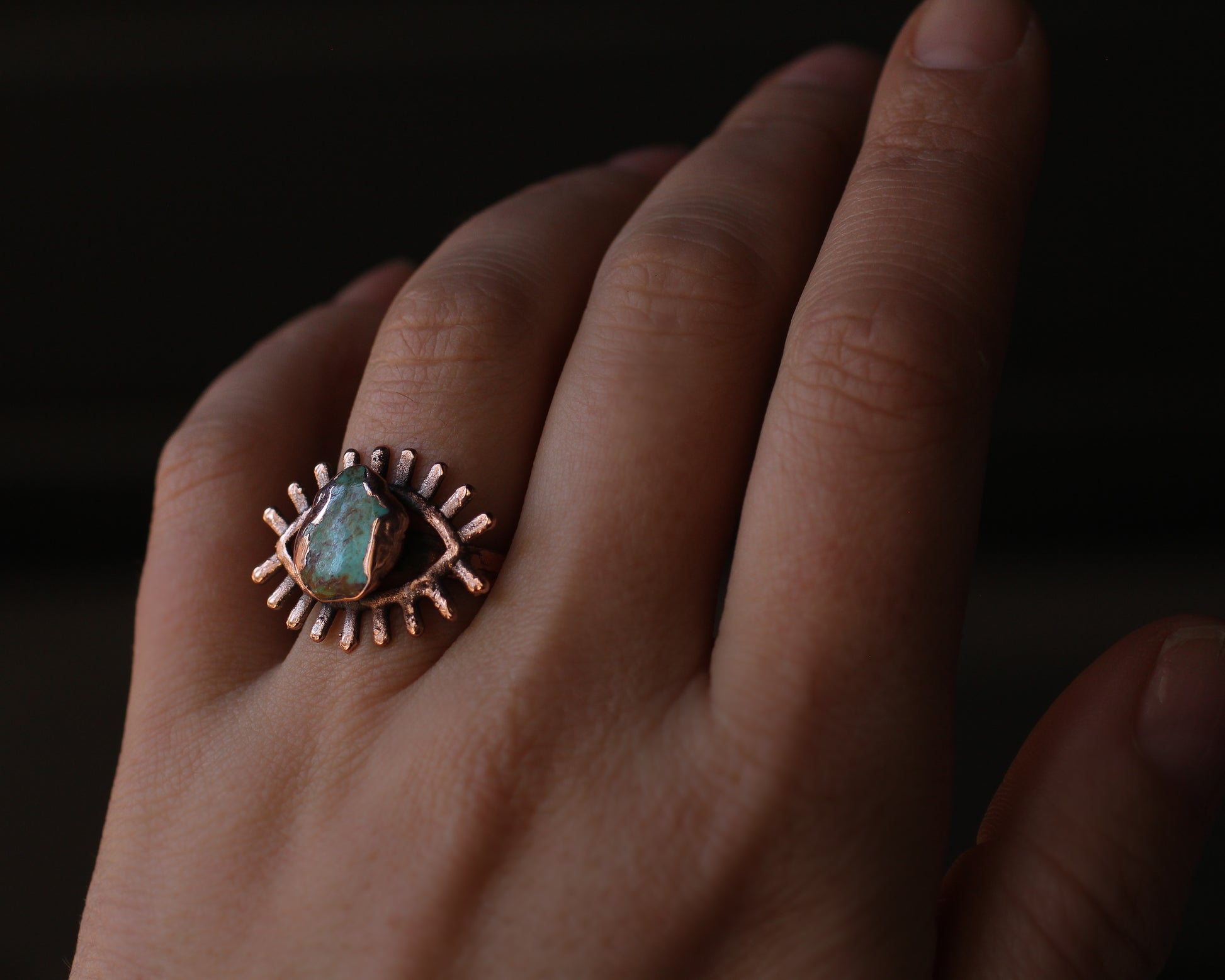 Two eyes to look, one to see … Inlaid Arizona Turquoise set in copper